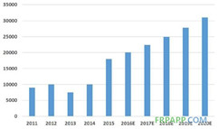 2015年年底,全球風(fēng)電裝機容量達(dá)到432.42GW,累計年增長率為17%。2015年碳纖維在風(fēng)能上的應(yīng)用為17000噸,預(yù)計2020年達(dá)到30000,年均復(fù)合增長率為8.1%。中國累計裝機容